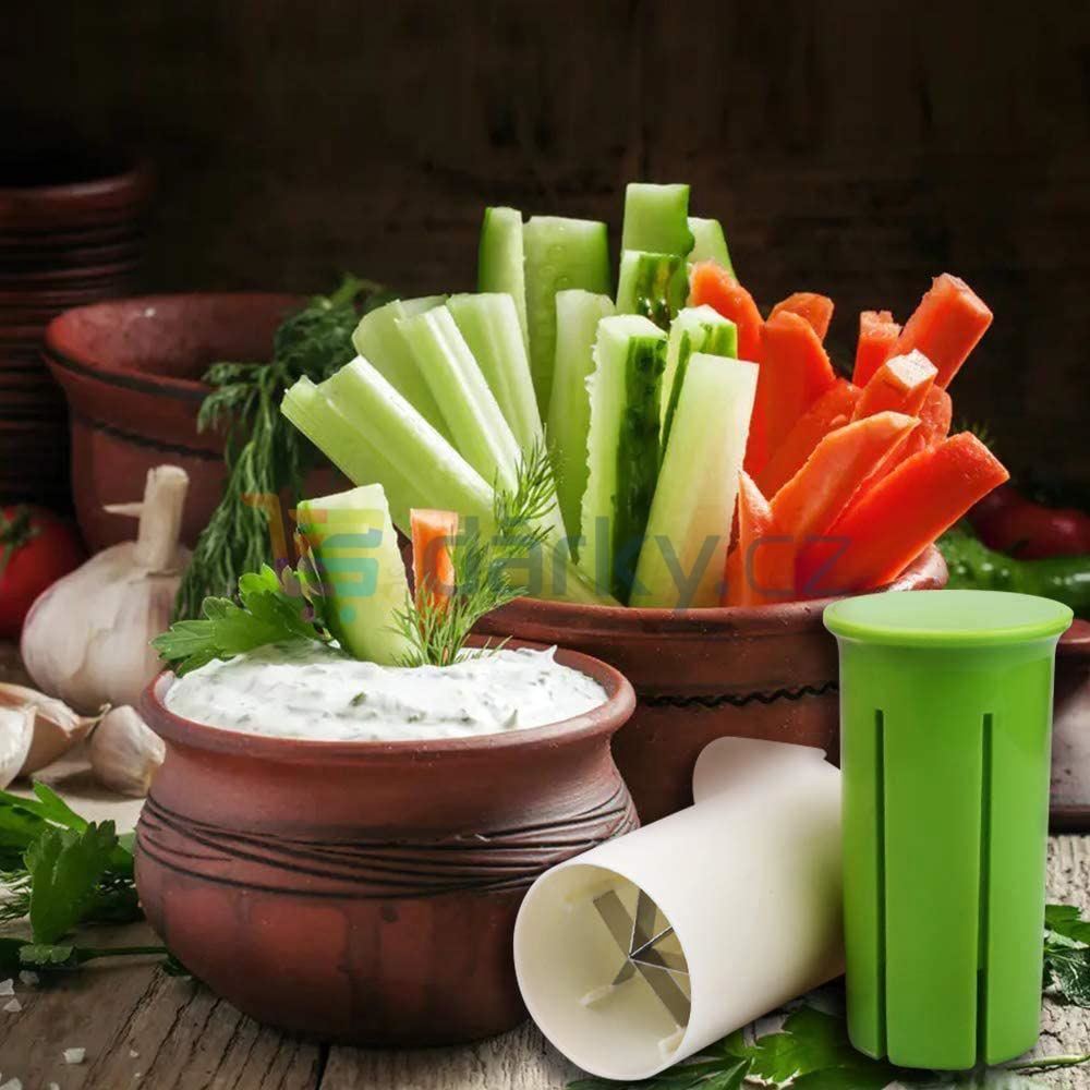 - Kráječ vhodný na okurku, cuketu, mrkev, houby, cherry rajčata a jahody